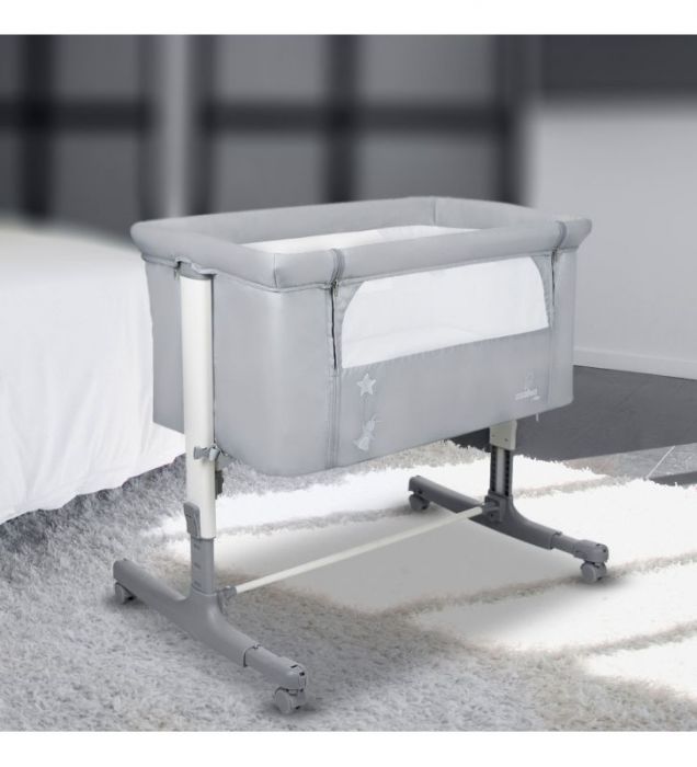 The Asalvo Calm Co-Sleeping Crib in pink provides a cozy and convenient solution for keeping your baby close during the night. Suitable from birth up to 15 kg, this crib features adjustable height settings to align with most beds, allowing easy access for feeding and comforting. Designed for flexibility and ease, it includes wheels for mobility, a compact fold for storage, and a rocking function for soothing.