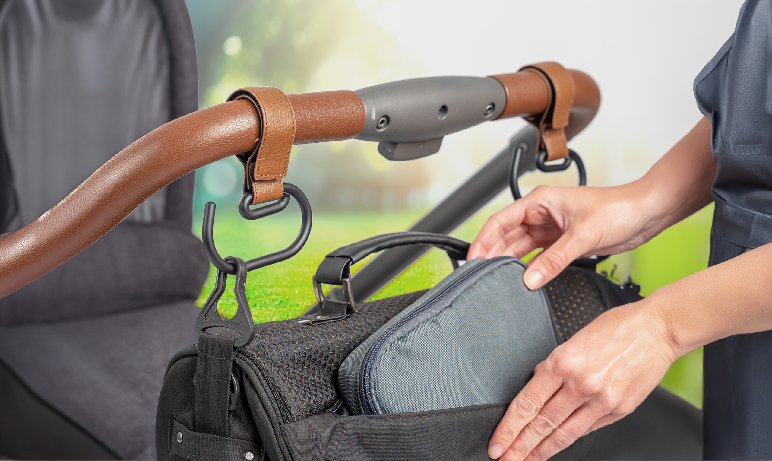 Whether it’s a diaper bag, handbag, shopping bag, or toys—everything can be securely attached to the stroller. Your bags hang securely on the stroller handlebar, so they’re always within easy reach without slipping or getting in the way. This means you no longer have to carry heavy bags, you have both hands free when you’re out and about, and you still have everything you need close at hand.
