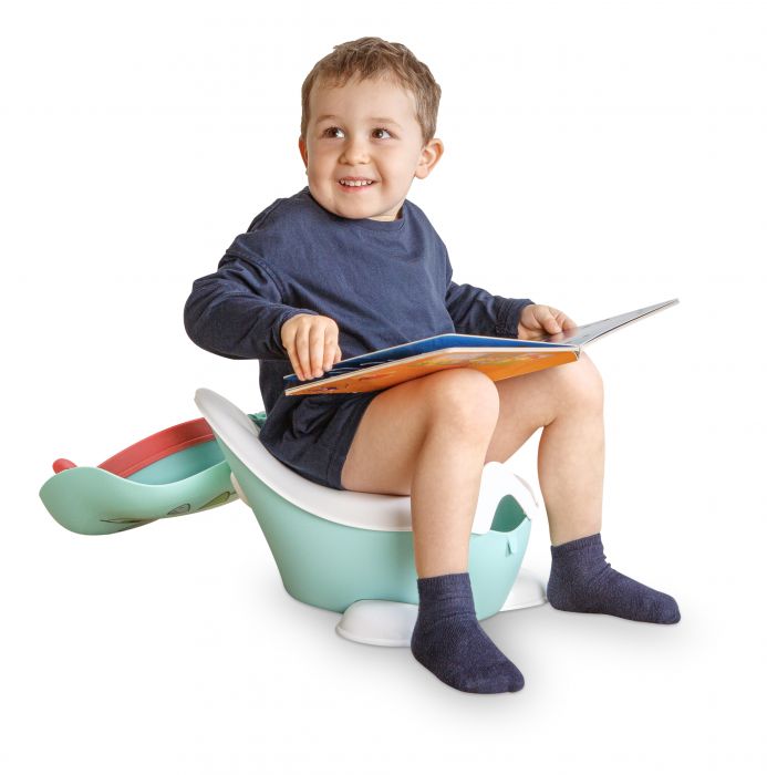 Make potty training a breeze with our Dinosaur Travelling Potty. Designed with an attractive dinosaur theme, this potty becomes a friendly companion for your child during this important phase. The innovative concept includes a leakproof cover, a secure tongue closure, and a convenient handle, making it perfect for use anywhere-whether at a hotel, camping, in the car, or at a friend’s home. The removable inner potty ensures easy emptying and cleaning, adding to its convenience. The unique dinosaur design revitalizes the potty training experience, while the high-quality craftsmanship and “Made in France” label are highly appreciated by consumers.