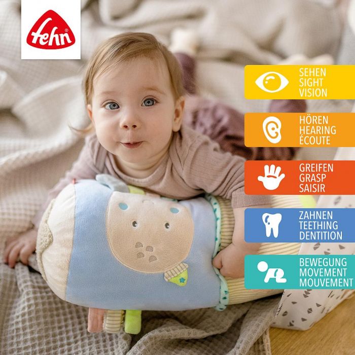 The Fehn Children of the Sea Baby Activity Tummy Time Roller is a captivating ocean-themed toy designed to encourage your baby’s development. With soft, textured fabric and adorable sea creature illustrations, this roller helps babies during tummy time and encourages them to crawl and explore. Hidden inside are rattles and crinkle sounds that engage the senses and make every moment a playful learning experience. Whether it’s for tummy time or early crawling, this versatile roller supports motor skill development and makes exploration fun and engaging!