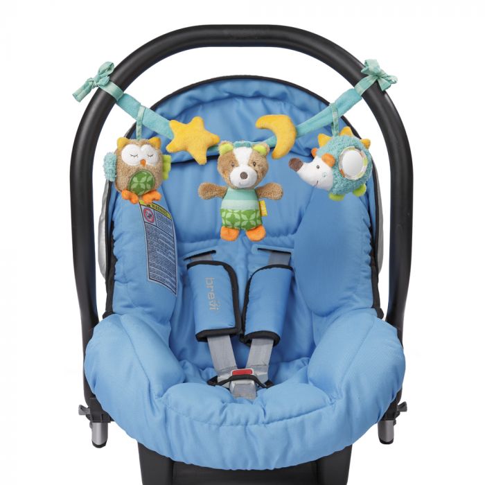This pram chain with squeaky owl, rattling fox and hedgehog with mirror is the perfect companion on every trip and invites your little one to grab and touch.  It will never be boring with its fresh bright colors.  The figures happily sway back and forth and thereby arouse baby¬¥s curiosity: newborns watch the colorful animals and young babies will try to reach for them.  The chain can easily be attached to the pram, infant carrier, crib or playpen with its clamps and therefore is suitable for use at home and on the go.