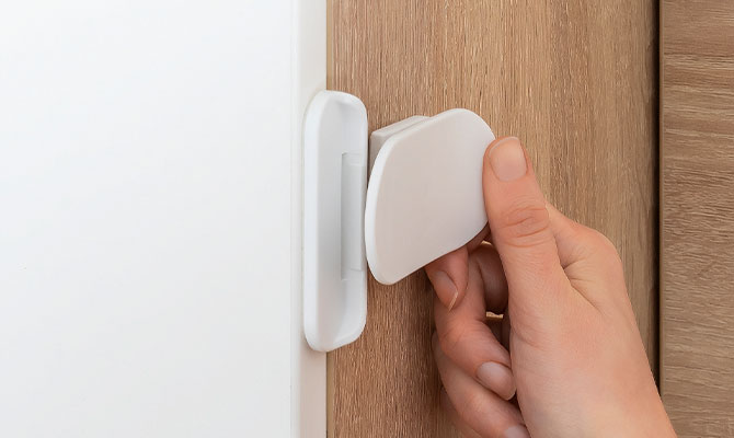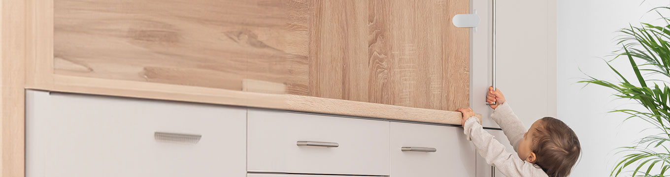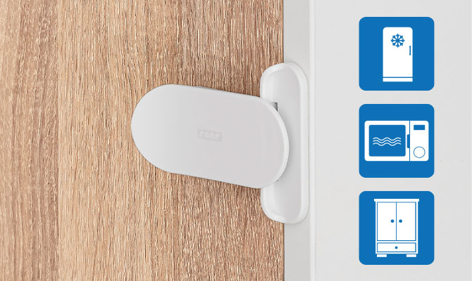 The lock not only serves to prevent your child opening the fridge without being noticed. Thanks to its multifunctional use, it is equally suited to securing microwaves or dishwashers, for example. It can also be used to make drawers and cupboards child-proof. Whatever the hazard you wish to prevent, thanks to its simple, modern design it fits harmoniously into any home environment.