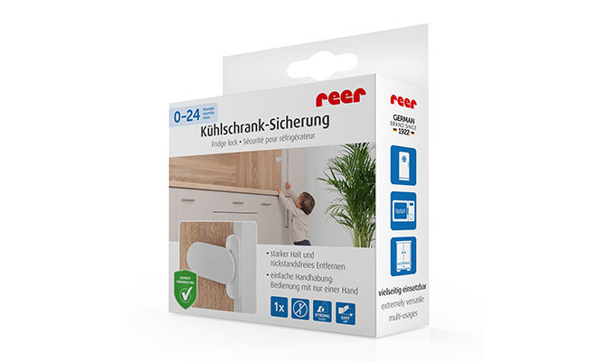 With the reer fridge lock, fridges and other similar objects are kept safely locked and inaccessible to young explorers. For adults though, they can be easily opened with one hand. The bar just needs to be pressed back and the fridge door can be opened. We recommend mounting the protective bar out of the reach of children.