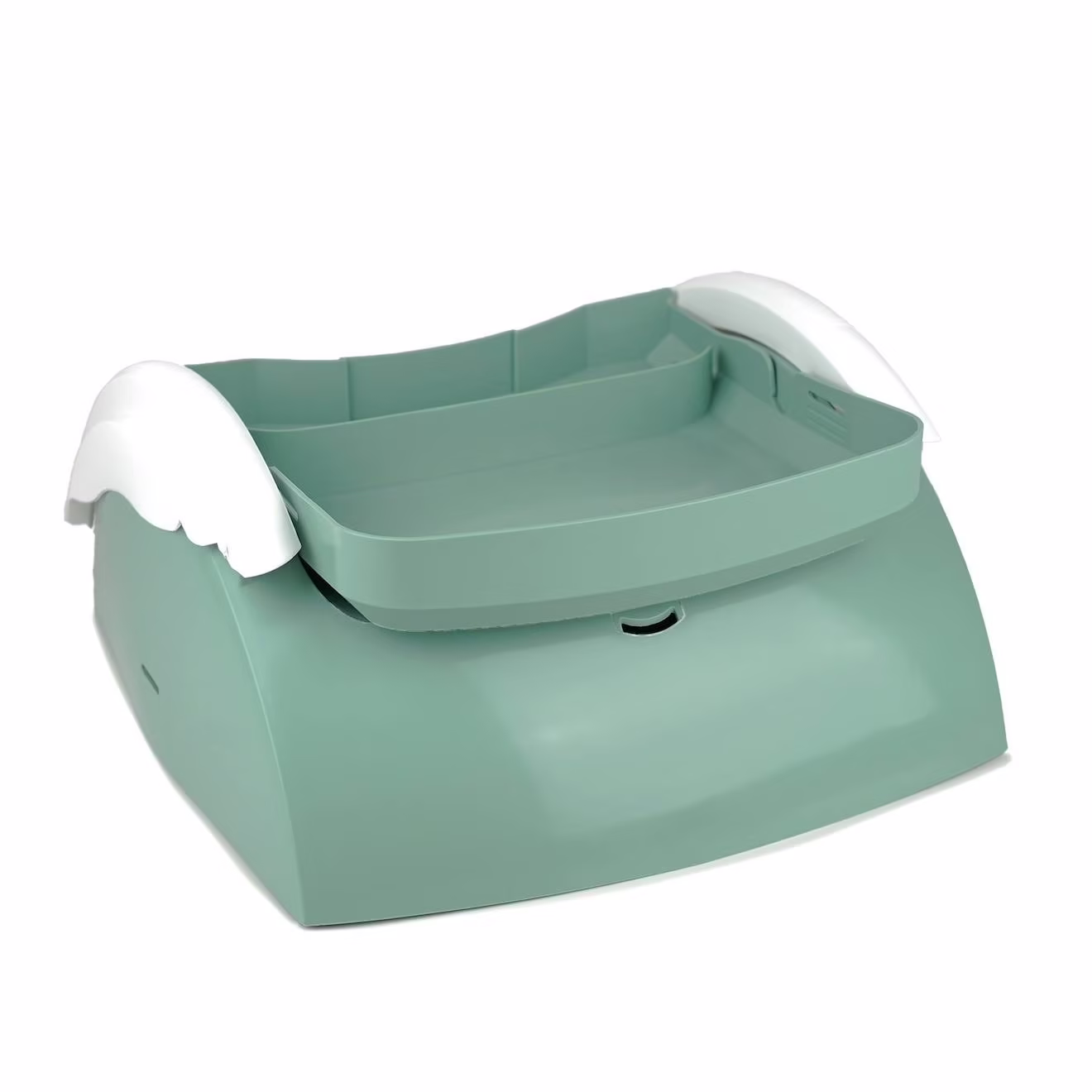 This booster seat is available in a very trendy color: sage green.
