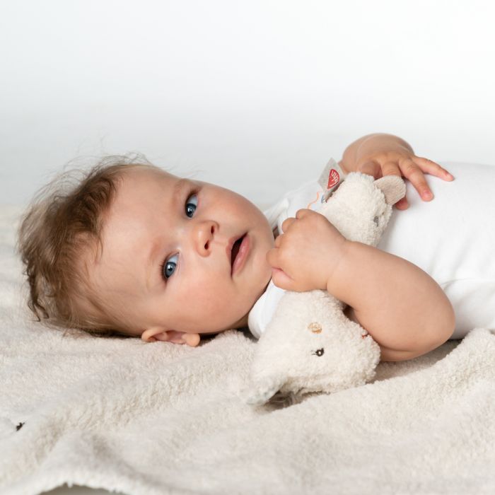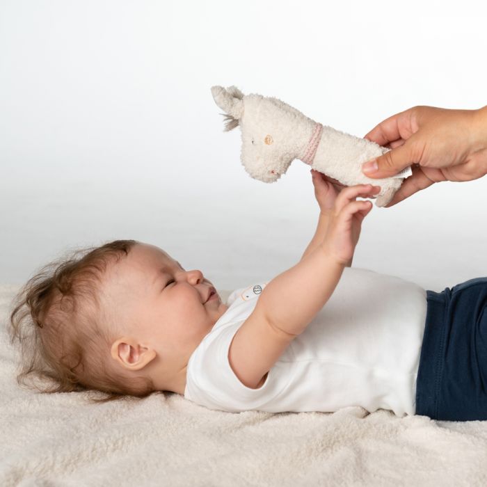 Cuddly grasping toy for rattling, squeaking, touching, playing – a devoted companion for babies and toddlers.