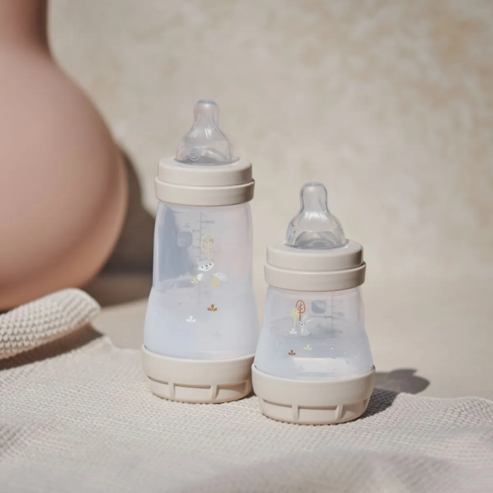 Each MAM Easy Start‚Ñ¢ bottle features a flat, soft SkinSoft‚Ñ¢ silicone teat, designed to feel just like mum’s breast, helping babies transition easily from breast to bottle. The innovative vented base reduces colic and discomfort by preventing the formation of air bubbles, confirmed by 80% of mothers¬≤.