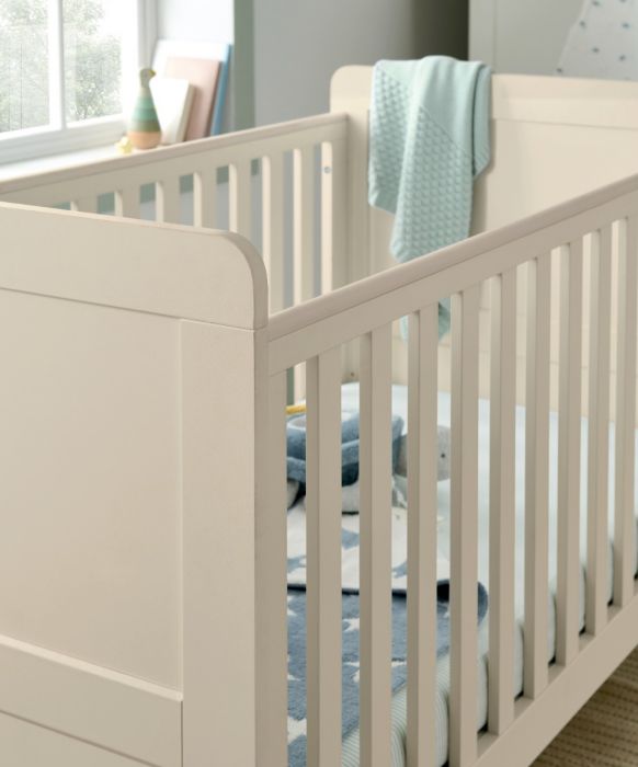 Our Hampden Cashmere set features our convertible cotbed and dresser/changer, with their signature minimalist design. Cotbed converts easily to toddler bed, allowing you to use from newborn right through until around 4 years. Dresser with removeable changing top, allowing you to continue to use this dresser for years, beyond the nursery. With three deep drawers for great storage. In shade Cashmere, a soft neutral that pairs well with a range of interiors to offer a sophisticated and calming atmosphere
