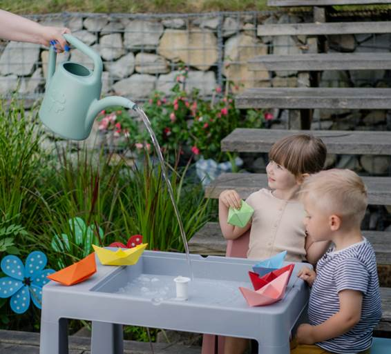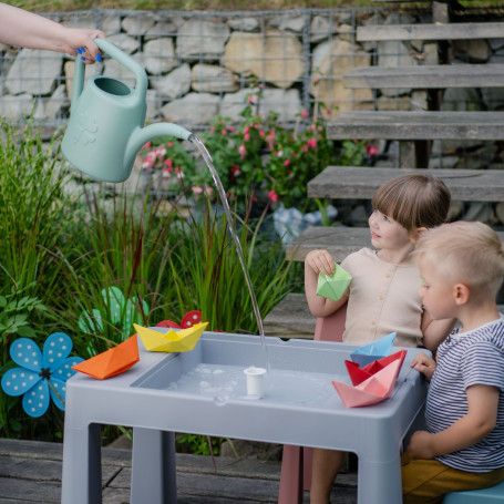 Lift the tabletop to discover an inner compartment that can be filled with sand or water – ideal for sensory play, tactile experiences, and outdoor fun. Easily transform it into a mini sandpit or water play station at home or in the garden.