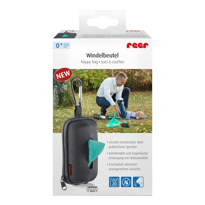 Perfect for On-the-Go: The dispenser is designed with a sturdy metal snap hook called Clip&Go, allowing you to easily attach it to your diaper bag. This way, the dispenser is always within reach whenever you need it, without the hassle of rummaging through your bag. Whether you’re shopping, visiting the playground, or on a day trip, reer Nappy Sacks provide a convenient solution for diaper disposal on the go.